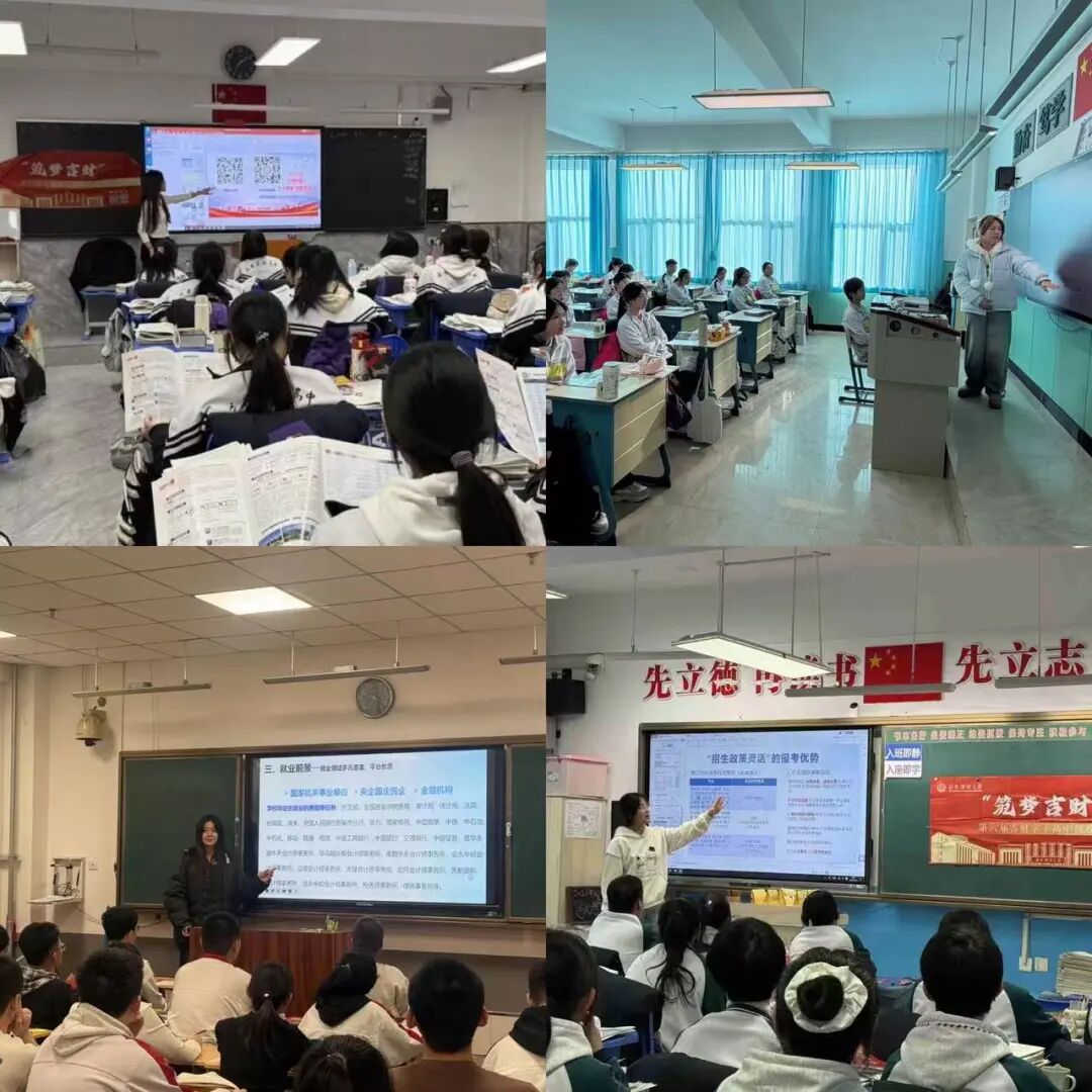 活动前,学子们提前与母校高中教师对接,携带学校介绍信、宣传视频、招生折页等材料,精心策划讲座流程、准备分享内容。活动中,他们既是吉财故事的讲述者,也是高考经验的分享者。详细介绍吉林财经大学的办学历史、41个招生专业(含16个国家级、23个省级特色专业)、师资力量和就业前景。同时,将自己的高考备考技巧、志愿填报心得和大学生活体验等倾囊相授,累计开展主题讲座38场、座谈交流56次,发放招生宣传材料超2000份。