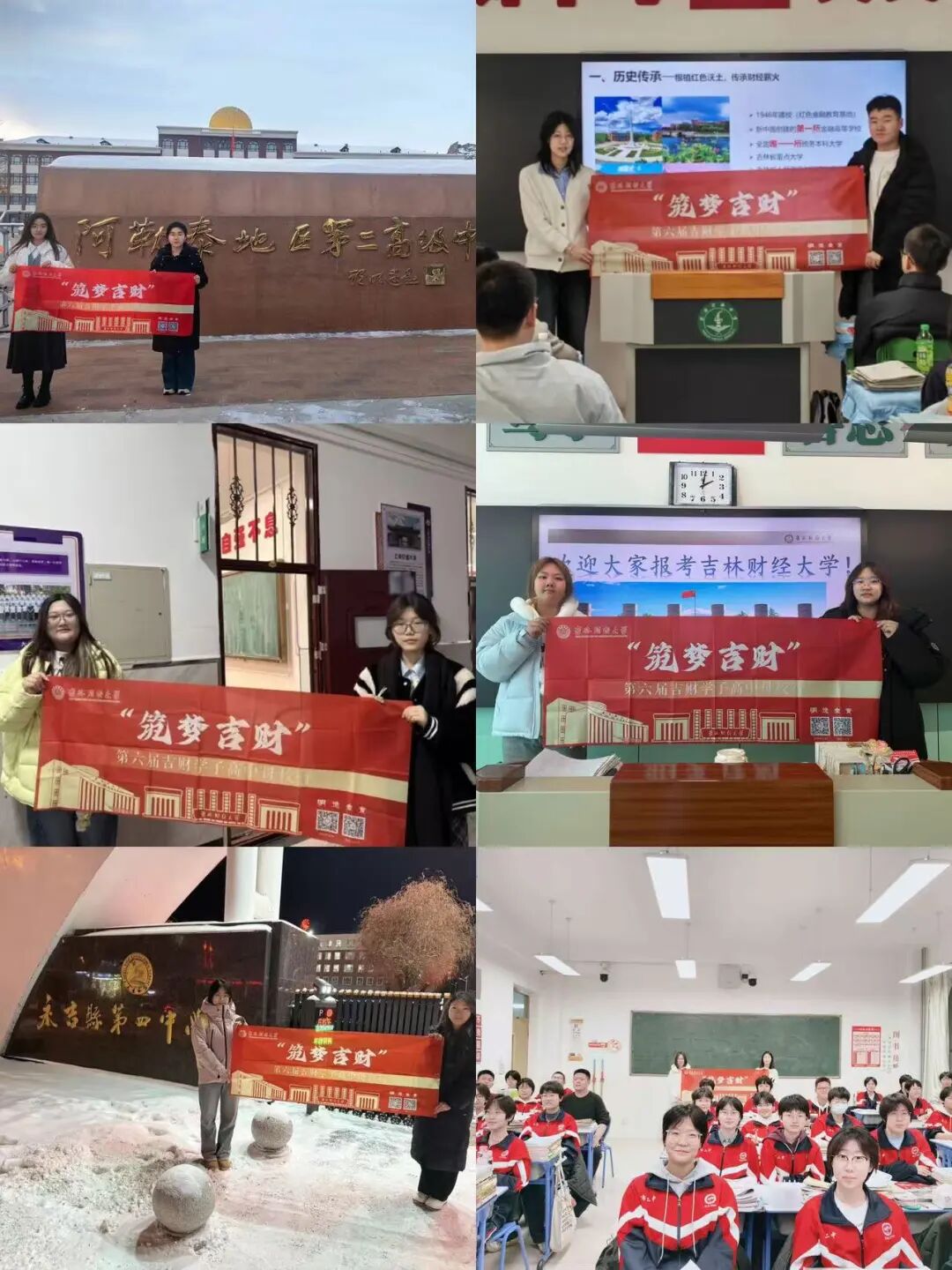 当寒假的钟声敲响,一批心怀感恩与责任的税务学院学子,化身吉财“招生代言人”,奔赴全国多地高中,开启了“吉财学子高中母校行”寒假社会实践活动。作为吉林财经大学招生就业处主办的特色活动,税务学院学子以饱满热情、扎实准备,在回访母校的旅程中传递吉财温度,展现税院风采。
